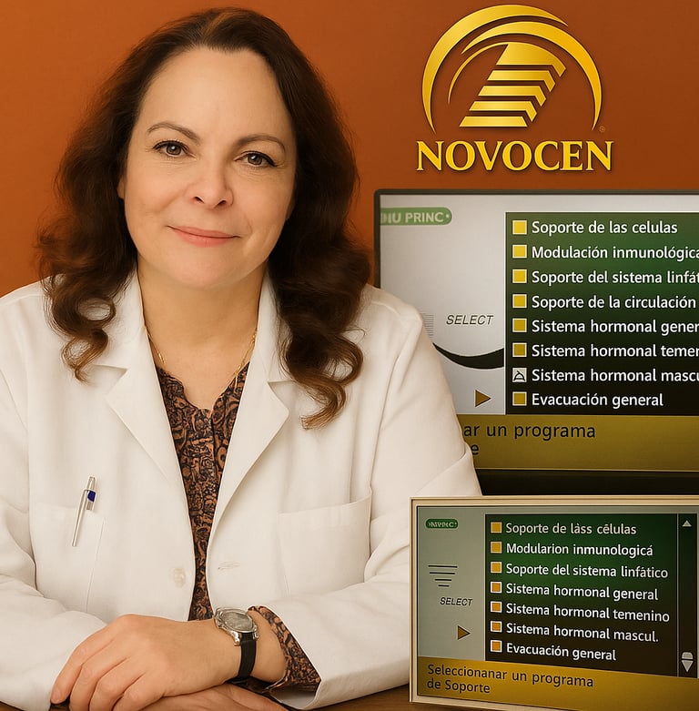Ésto me motivó a investigar más sobre la medicina complementaria y la medicina funcional. En Alemania encontré los mejores equipos con certificación médica tanto de Diganóstico por medio de electrografía y bioimpedancia, así como, Terapéuticos por medio de biorresonancia. Así inauguré mi consultorio NOVOCEN en el año 1999 y me he especializado en la atención de padecimientos crónicos y alergias desde entonces.